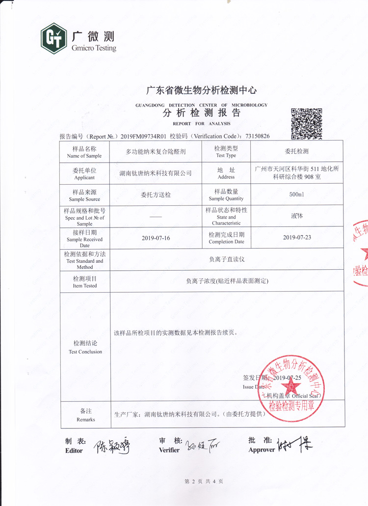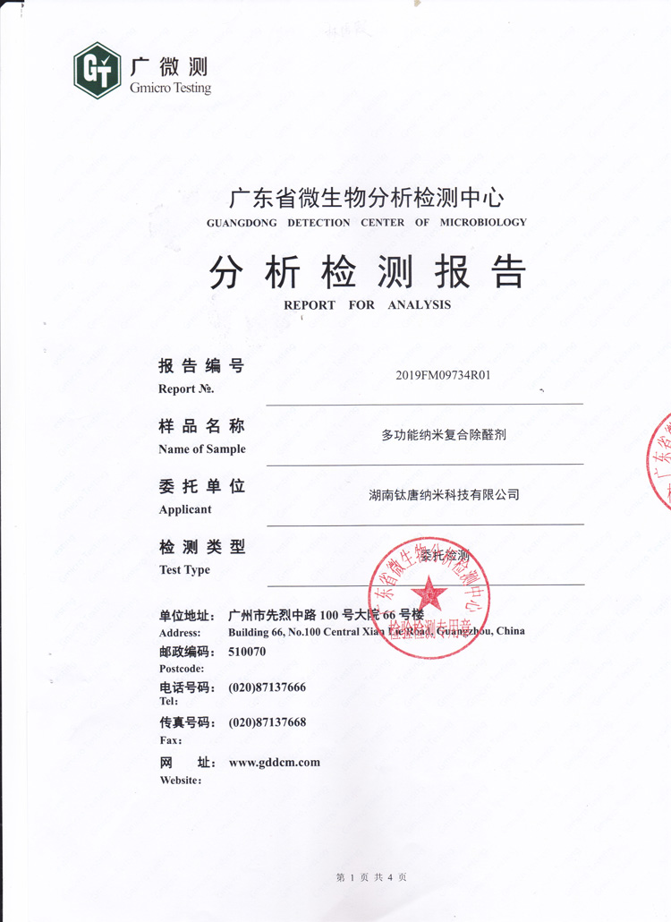 下一篇 :多功能納米復合除醛劑抗菌檢測報告