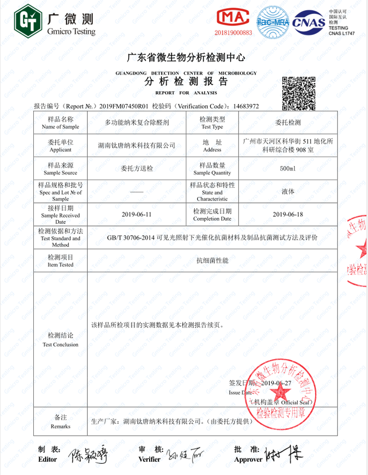 下一篇 :多功能納米復合除醛劑除甲醛檢測報告-無(wú)光條件下