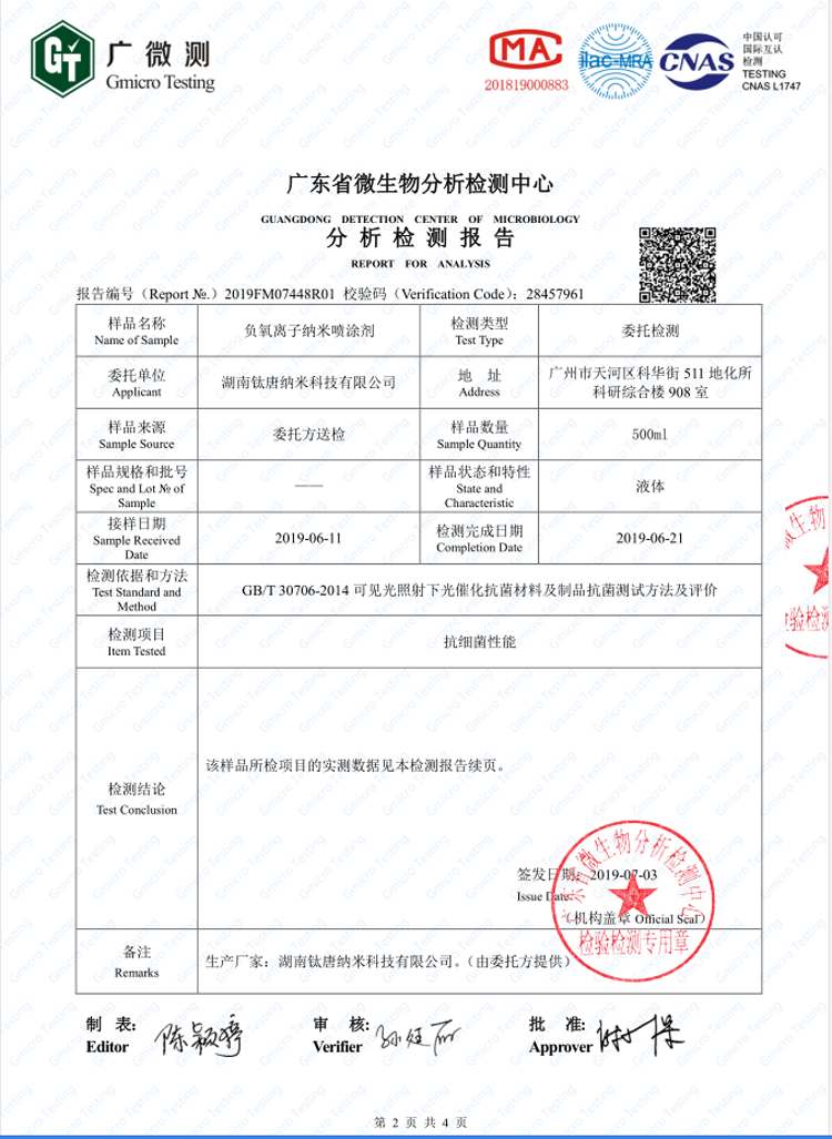 下一篇 :負氧離子噴涂劑除甲醛檢測報告