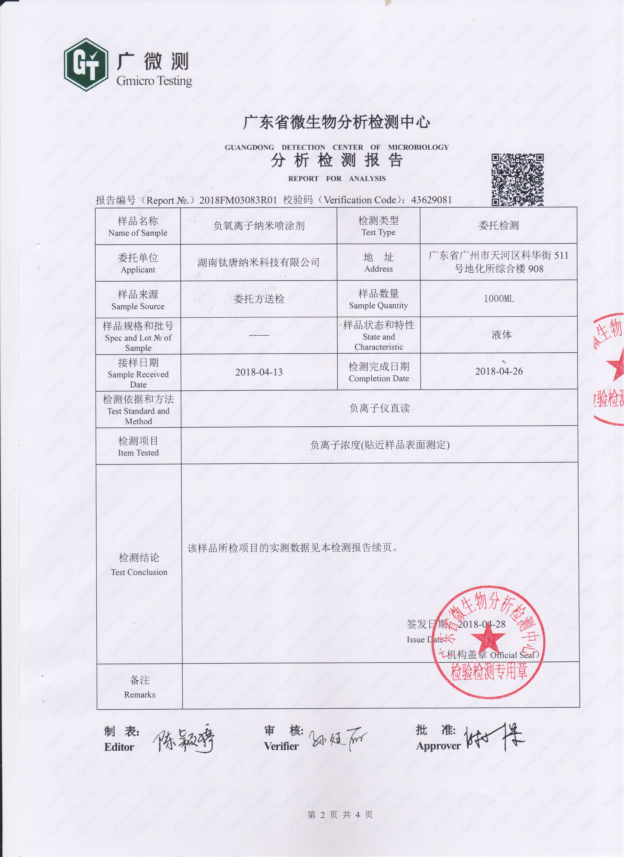 上一篇 :負氧離子噴涂劑除甲醛檢測報告